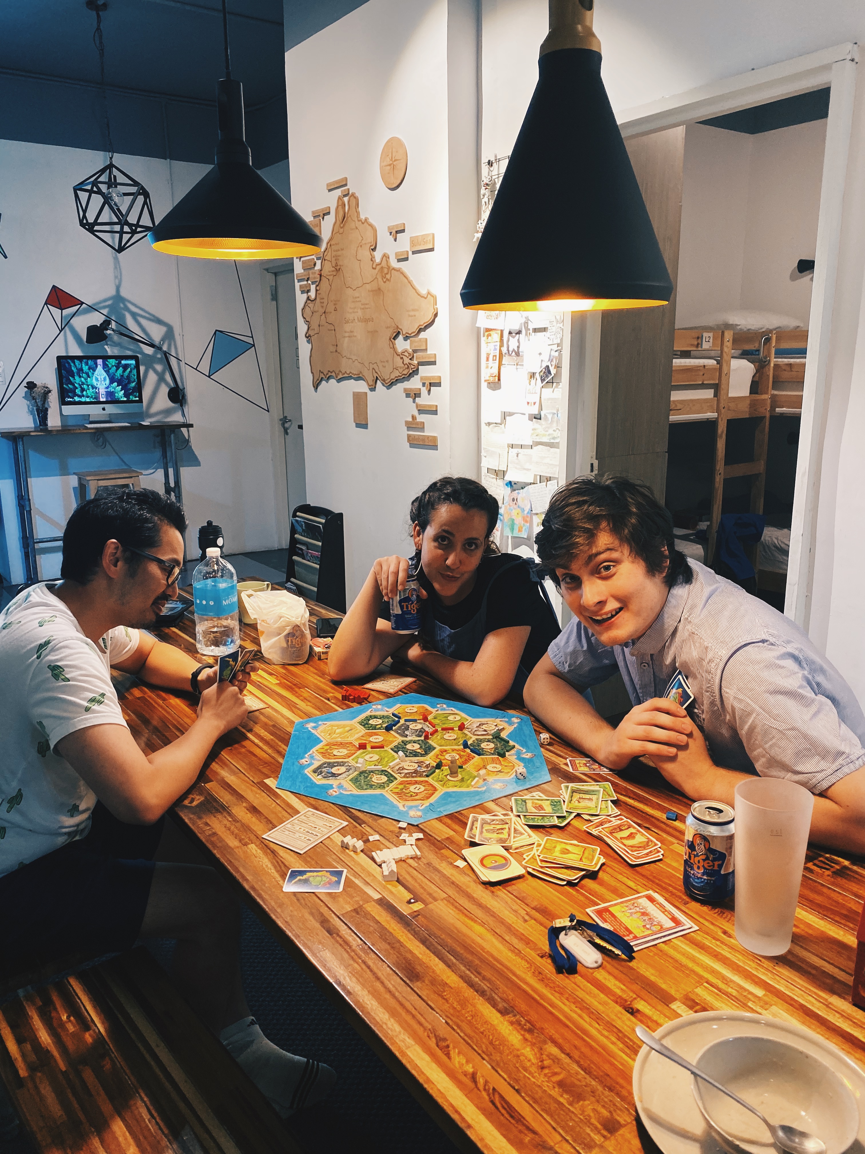 There is a washer/dryer at the hostel and it’s free!!!!!! There’s also tiny kitchen, which is a rare treat amongst the many kitchen-less hostels in Southeast Asia. There are loads of board games ( π ), plugs, curtain, and personal night in each bed, and decent wifi.
