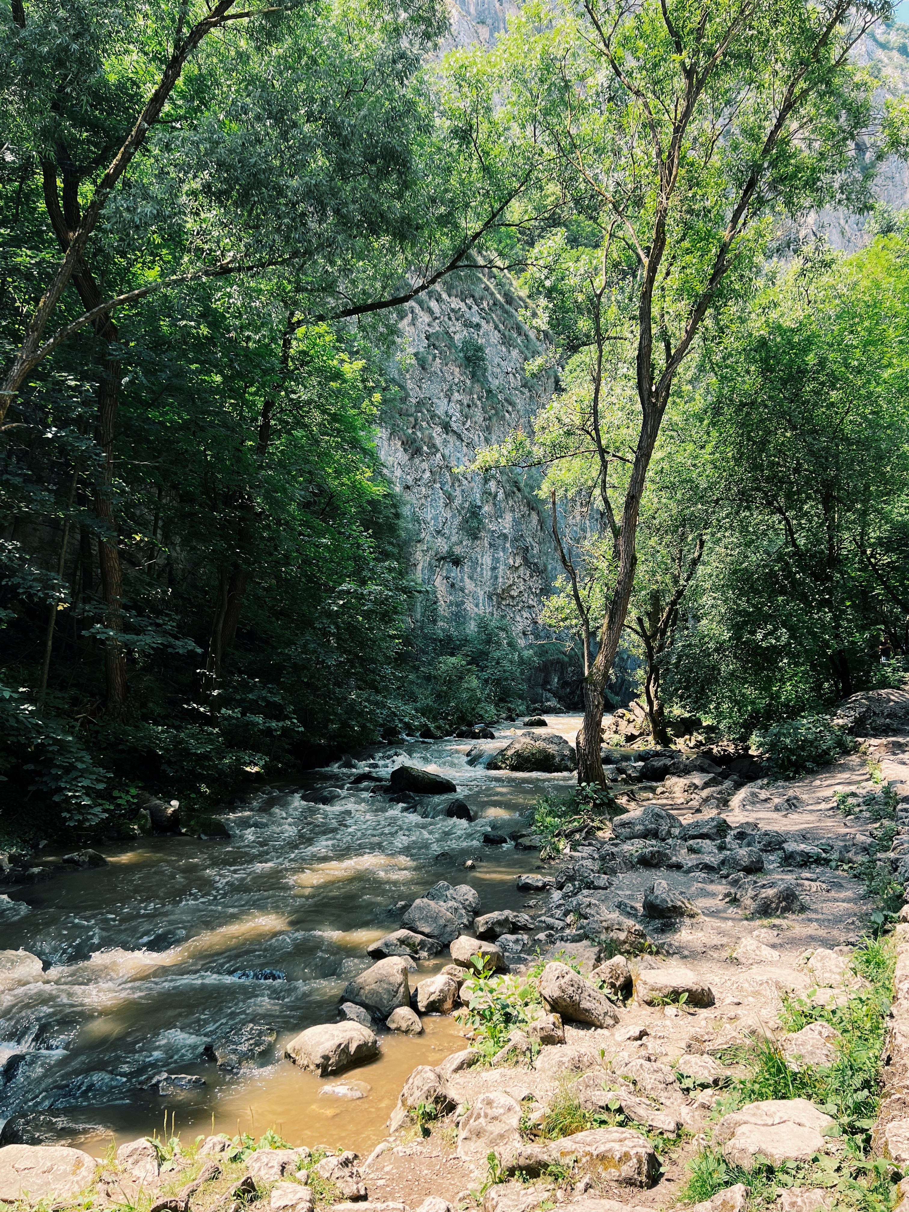 - Turda Gorge – beuatiful nature reserve. The canyon, formed through the erosion of the Jurassic limestone of the mountain, is 2,900 m long and the walls have heights reaching 300 m. Nice to be able to walk under some trees along a river for a bit. On the drive here, we didn’t see many trees.