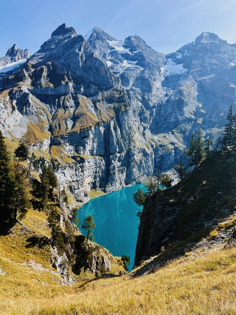 My favorite hike was one my friend recommended (shoutout to Joe). Don’t miss the ~5 mile loop around Oeschinen Lake. Here’s an in depth description of the hike itself. It has unbelievable views, a well-marked path, a lake with the bluest water, and a small hut with snacks half way through- what more could you want! One watch out: there were plenty of people in October, so I am sure it’s way more packed in July/August. Also, definitely take the gondola from Kandersteg up to the trailhead. You’ll get plenty of exercise with just the 5 mile hike.