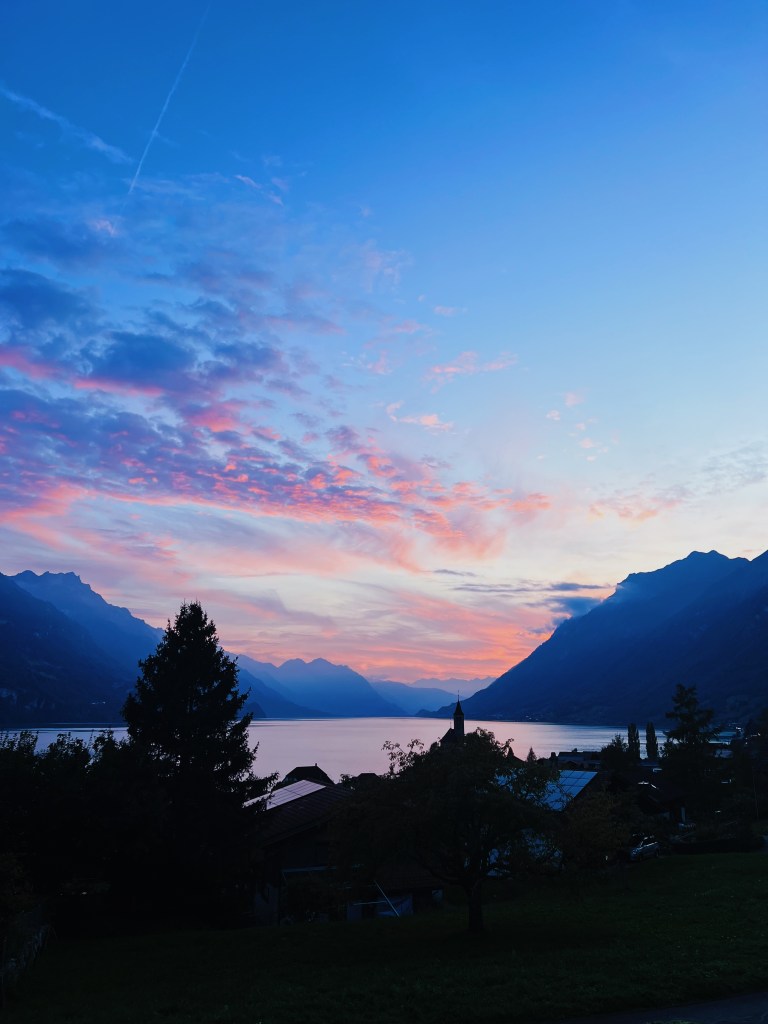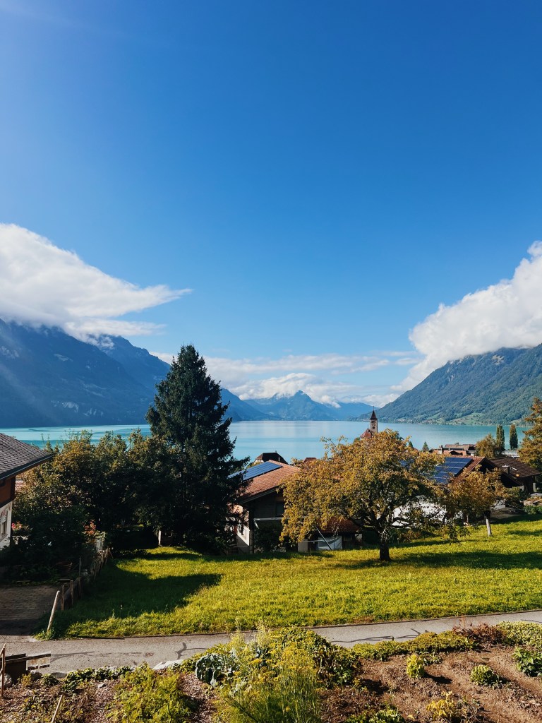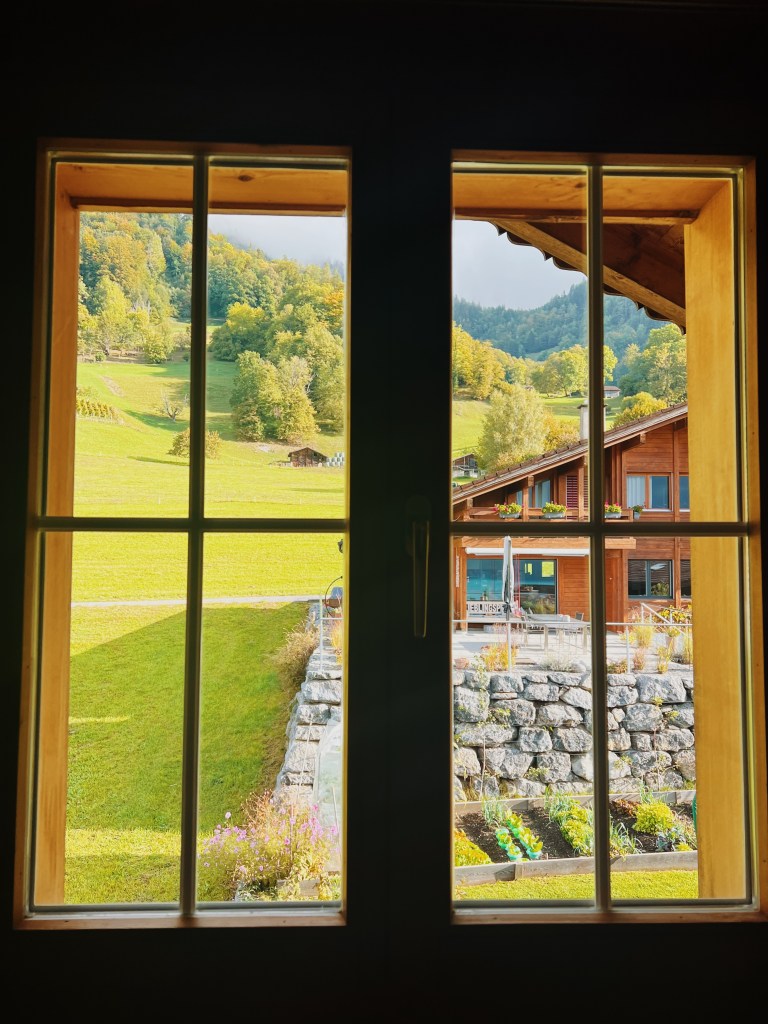 I stayed at this incredible Airbnb. It truly was spectacular. I was there solo so obviously just needed a room, not a whole airbnb (& as we know Switzerland is expensive, so even just a room with a single bed wasn’t cheap). I wanted to be near the hikes/towns I wanted to go to + I had a car so decided against staying at a hostel in Lucerne (even though that was my original plan). I am SO glad I pivoted. This airbnb was so incredibly charming & had wonderful views of rolling green fields with cows on one side and stunning view of the lake on the other. Can’t beat it. It felt very authentic.