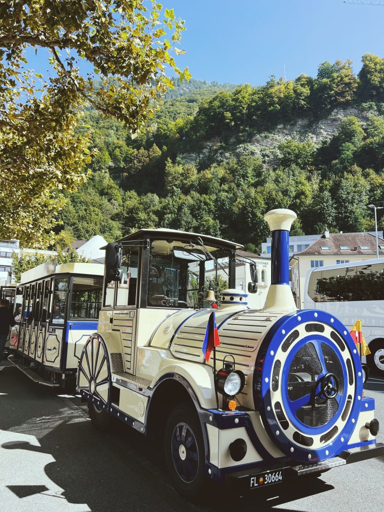 Vaduz – the capital. I took a ride on the City train, a cute little tourist train looking open air bus that took us on an hour tour around the city. We got to see the famous Rote House (Red House) & the Vaduz Castle where the prince currently lives. I got a tourist passport stamp on my Liechtenstein postcard (since I didn’t want to risk messing with my actual passport).