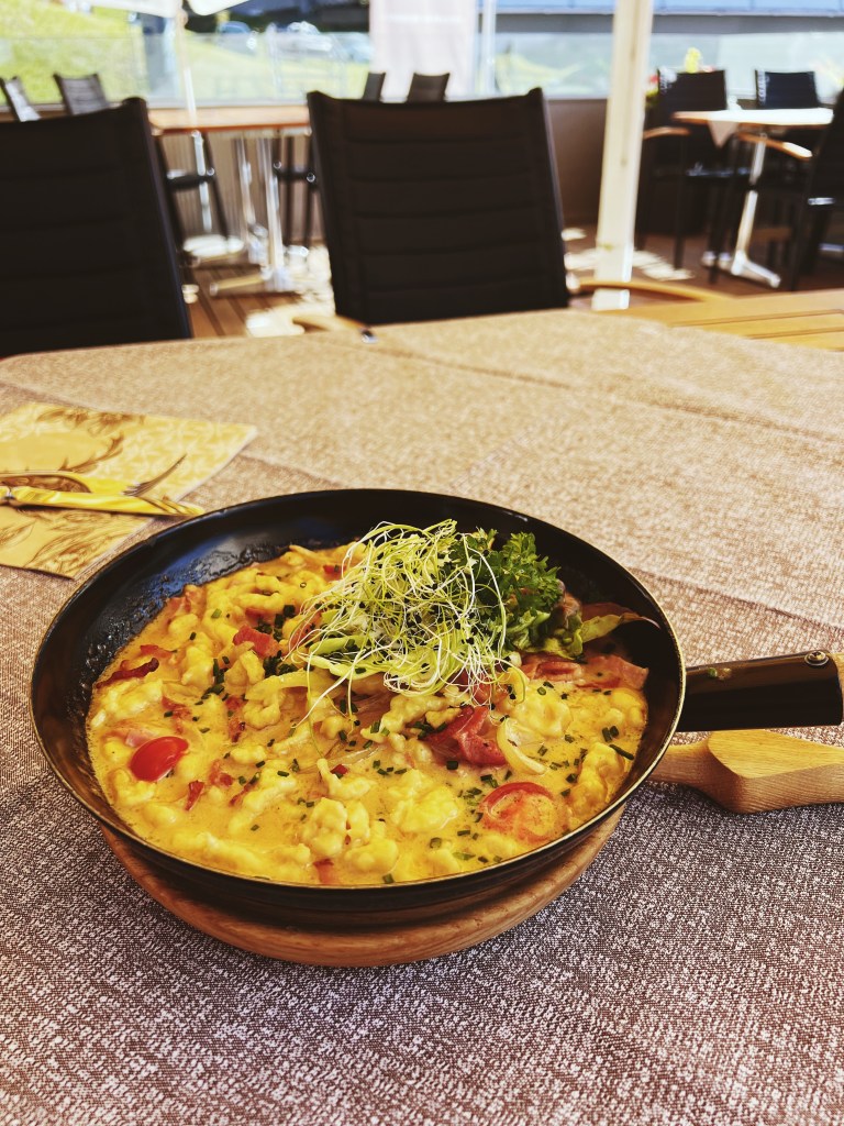 The standout meal was at Hotel Turna Malbun, where I tried Spaetzle Pfanne. Basically it’s eggnoodles with ham, bacon, onion and cheese aka obviously I loved it. It was huge so I saved half for dinner!