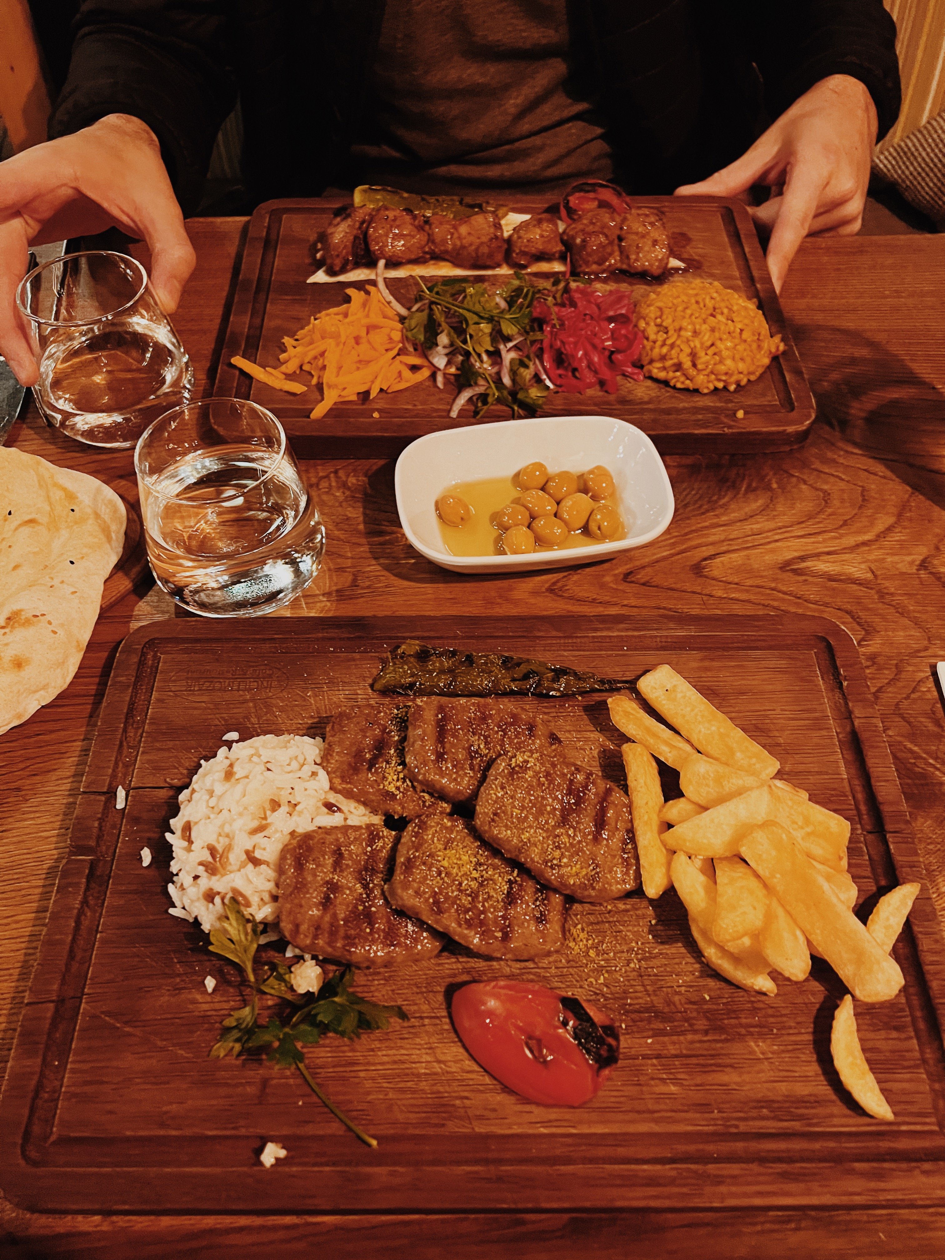 Incili Mozaik – We ate here our first night after a long day of travel (8 hrs for me, 30hrs + for Jake) so we ended up in the touristy area close to our hostel. We honestly expected subpar, yet expensive food as such, but we ended up loving the food. We might even say it was out favorite meal in Istanbul (although it could be just that we were so tired & hungry that anything tasted good haha). My Turkish meatballs were so moist & tasty. Jake loved the assortment of meats he got. Honestly, a great spot that is very close to the Hagia Sofia.