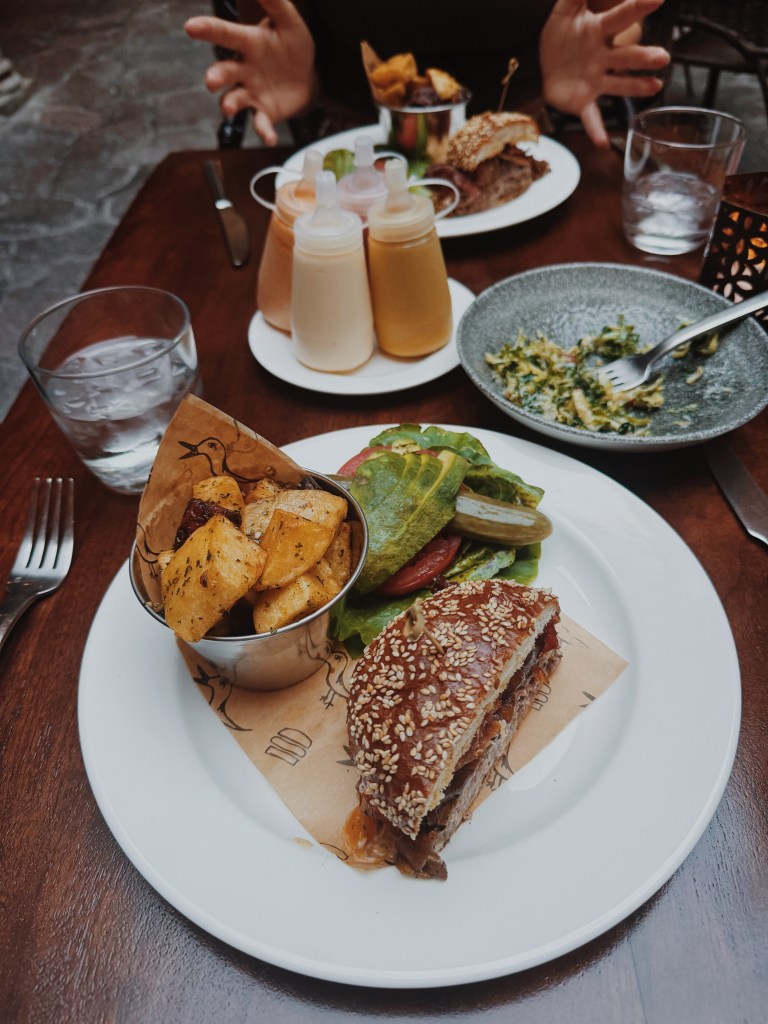 • The Restaurant – Ambiance is incredible & was higher end than where I usually eat at while backpacking, but it was a nice treat! The patio had beautiful plants & we loved the al fresco dining. I had a yummy burger! This was recommended to us by our Airbnb hosts.
