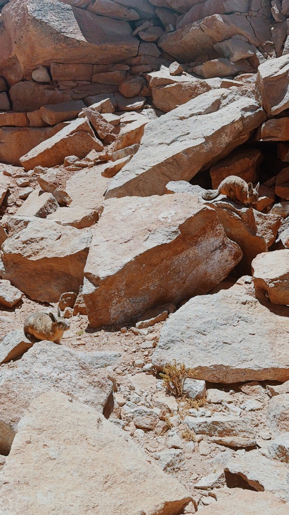 Day 2 is focused on lagoons and the desert. This was still pretty cool, but I definitely preferred day 1. We saw lots of flamingos, llamas and even a desert fox! We had a picnic lunch where all the Viscacha, while technically a part of the chinchilla family, they resemble rabbits, joined us. They were happy to take any of the carrots we dropped. We reached over 16,000 feet (which I think is the highest elevation I’ve ever been to!). We visited some geysers before arriving to our accommodation. The thermal hot springs were an option but I was honestly too cold to think about getting wet without access to a hot shower afterwards