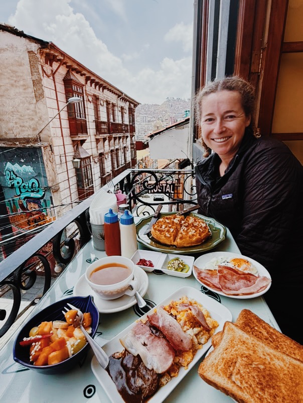 - Cafe del MundoΒ – this is a staple backpacker spot with breakfast all day and plenty of other great options as menu items range from all around the world. It was started by a Swedish backpacker who fell in love with La Paz and started the cafe. Each room is decorated/inspired by a different continent (and her travels there).