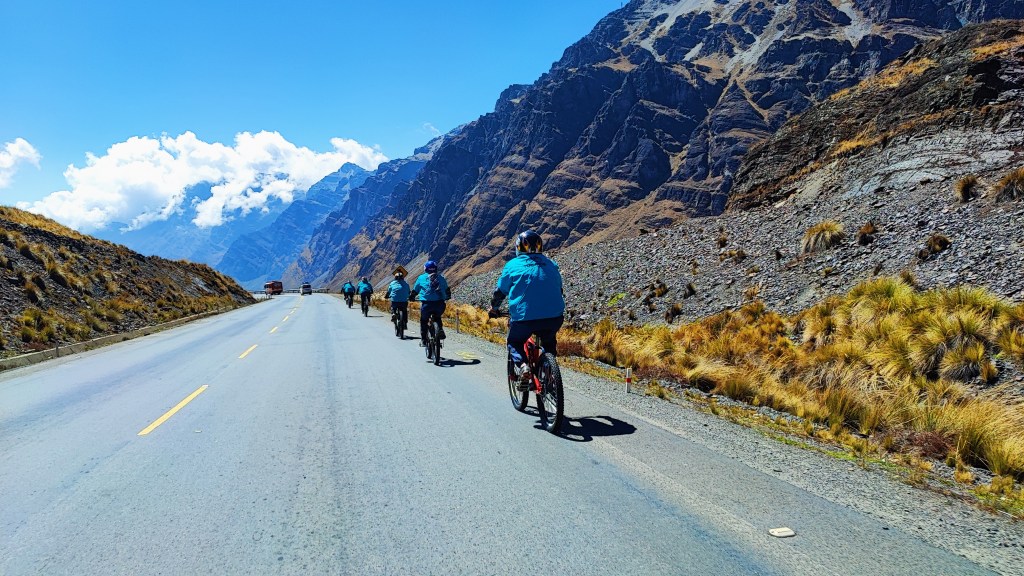We spent a lot of time acclimatizing to the elevation (don’t underestimate the effects), but we enjoyed conquering the Death Road. The Death Road near La Paz in Bolivia is one gigantic winding snake of a road (specifically ~69 km/40 miles long) named Yungas Road. It was built in the 1930’s to connect the Amazonian jungle to La Paz. Before it was shut to cars, around 300 people died annually driving the road, thus its name as Death Road. At one point you can look down and see a bus that is still visible half way down the cliff. Very sad to see the remnants of all that the Death Road has taken from Bolivian families. At times, itβs only about 3 meters wide, and protective barriers are nonexistent. With the rain, fog, and landscapes, it is easy to see how it lives up to its name. Now, the only use is for tourists to mountain bike down as a group (and while there’s far fewer deaths for bikers than drivers, people do still die on this road so take precautions). You start at 15,230 ft (4600 m) and end at around 3870ft (1200m). This is like going from the base of Breckenridge Ski Resort all the way down to sea level & then add 2000 more feet. We had a blast, but it was definitely hard biking down steep gravel. I heard from lots of backpackers that we met that either they themselves or others on their group had fallen and gotten hurt. Luckily neither of us fell, and no one from our group fell either. I biked very, very slowly haha. I did not want to injure myself before our trip to Patagonia or Antarctica! It was wild going from the chilly, barren mountain tops all the way down to the hot and humid jungle in one day. It also definitely took a toll on our body – neither of us felt 100% the next day due to the extreme changes in elevation we put our body through. I’d still recommend it though!