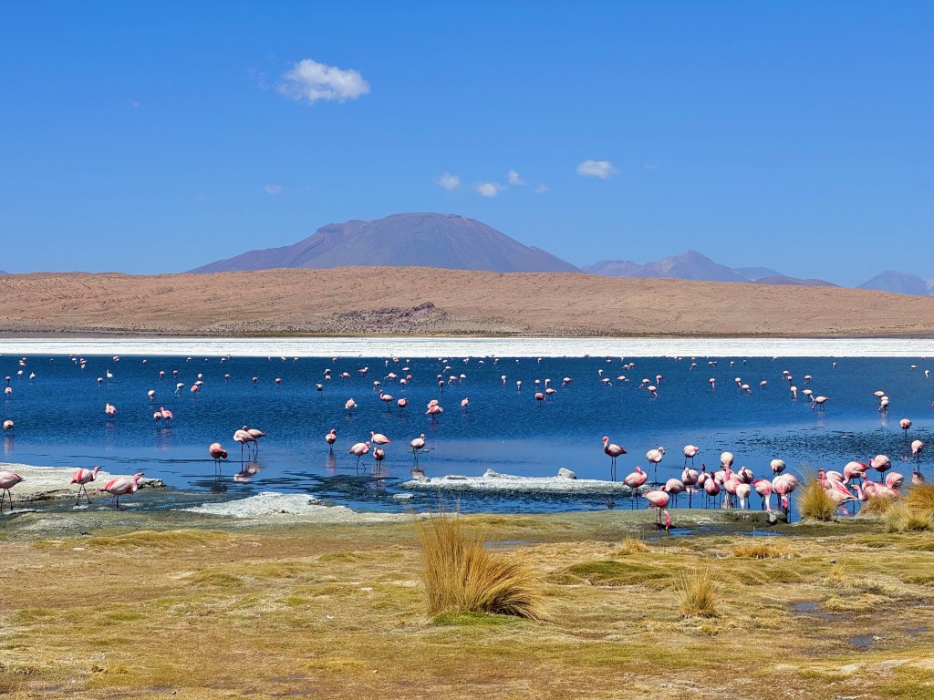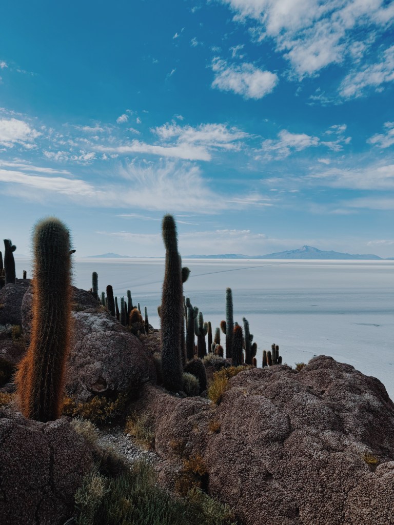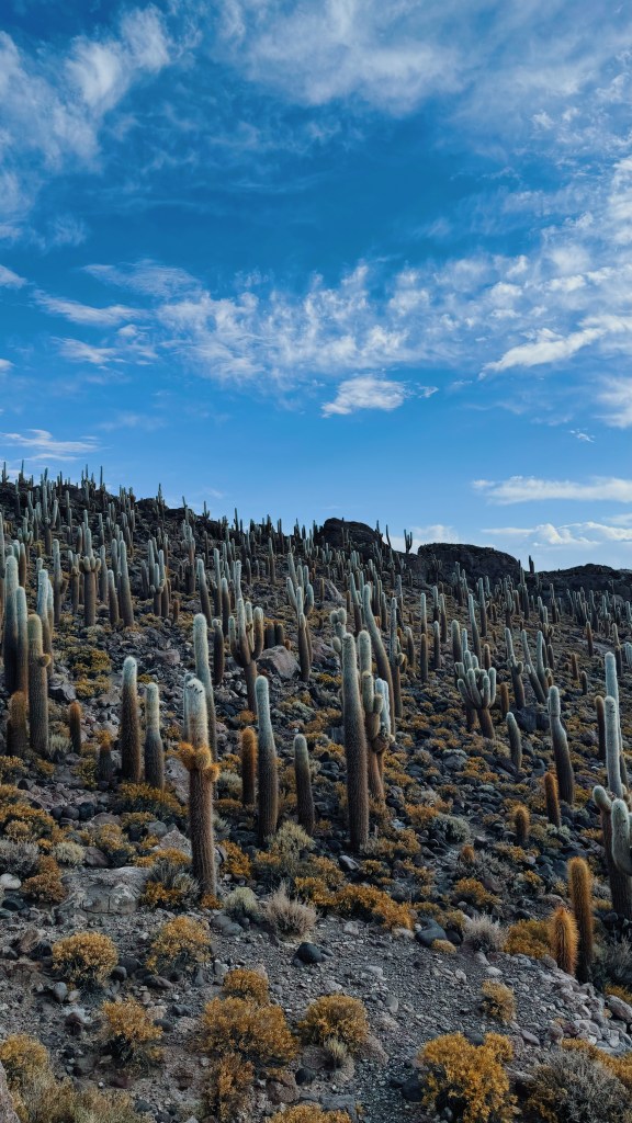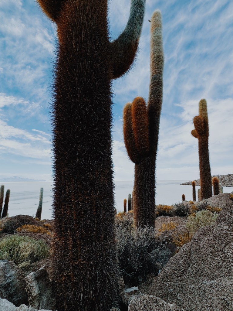 Day 1 is focused on the Salt Flats. You do start with the train graveyard where there are a lot of old trains. We also visited a town where they process a lot of the salt. Then we were off the to the Salt Flats itself. This was the highlight for me for sure! Such an incredible landscape that I’ve never experienced before. You could spin 360 degrees and all you could see was salt & the blue skies. Remarkable! We also visited the Isla Incahuasi – an island that used to be an underwater volcano. Thereβs volcanic rock and coral remaining and now a bunch of cacti live there. They are huge!
