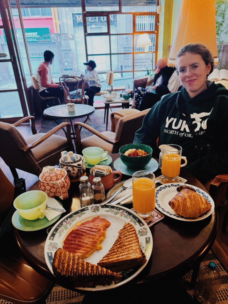 - Devotos Typica – This is two blocks from the hostel and quickly became a favorite. Great coffee (according to Sonja) & their few breakfast menu offerings deliver. I loved their breakfast plate that included toast, scrambled eggs, bacon, croissant and hot drink. All for ~$3.5usd. Unreal! Also I became obsessed with their croissants. I felt like I was in France.