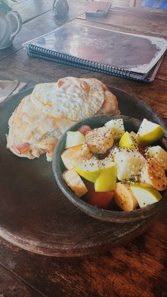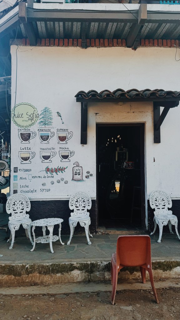 - Visit the other towns on the Ruta de Las Flores! Either rent a motorbike or hop on a chicken bus. All the towns are tiny, cute and charming. I only had time to visit Concepcion de Ataco, but I really enjoyed it! Pro Tip: Eat at Axul Coffee Artesanías – I had a croque madam here. Super cute vibe in the backyard patio & a cute store was attached. Gekos Cafe right off the main square also looked cute!