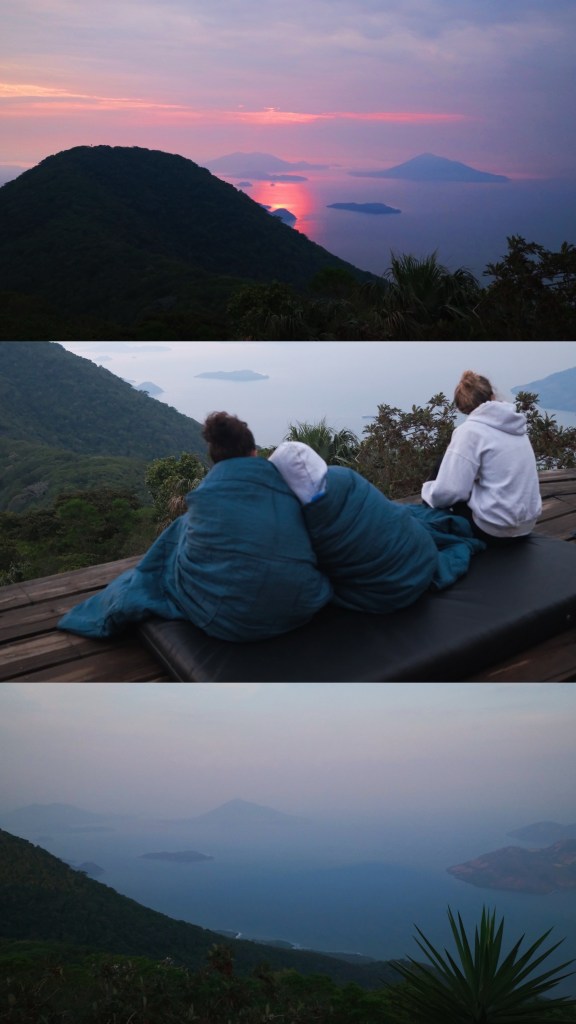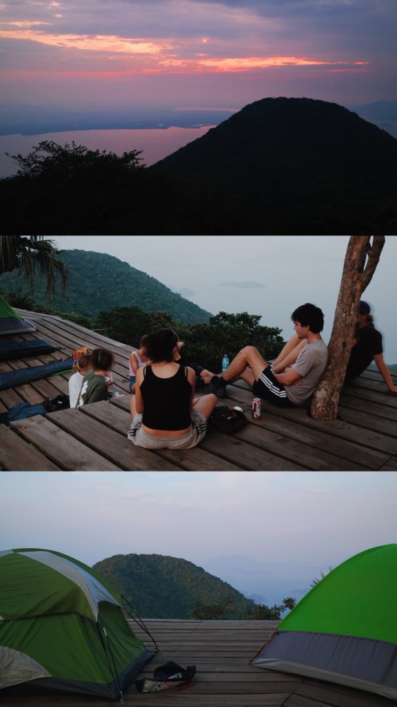 Some tents on top of a mountain on an observation deck 🙂 We were able to rent a tent, sleeping bag & sleeping pad on site when we arrived (costs about $20 for all three).