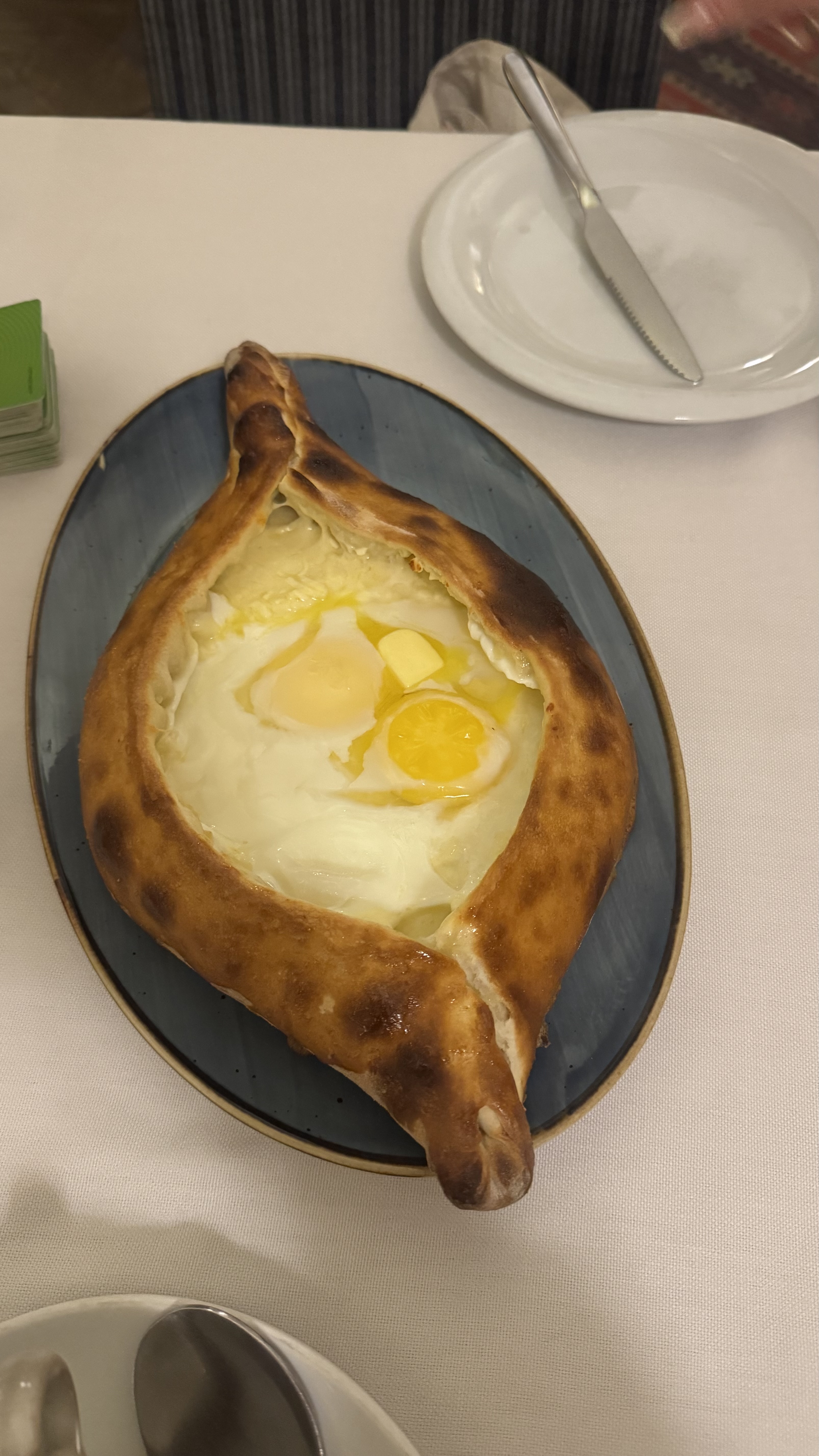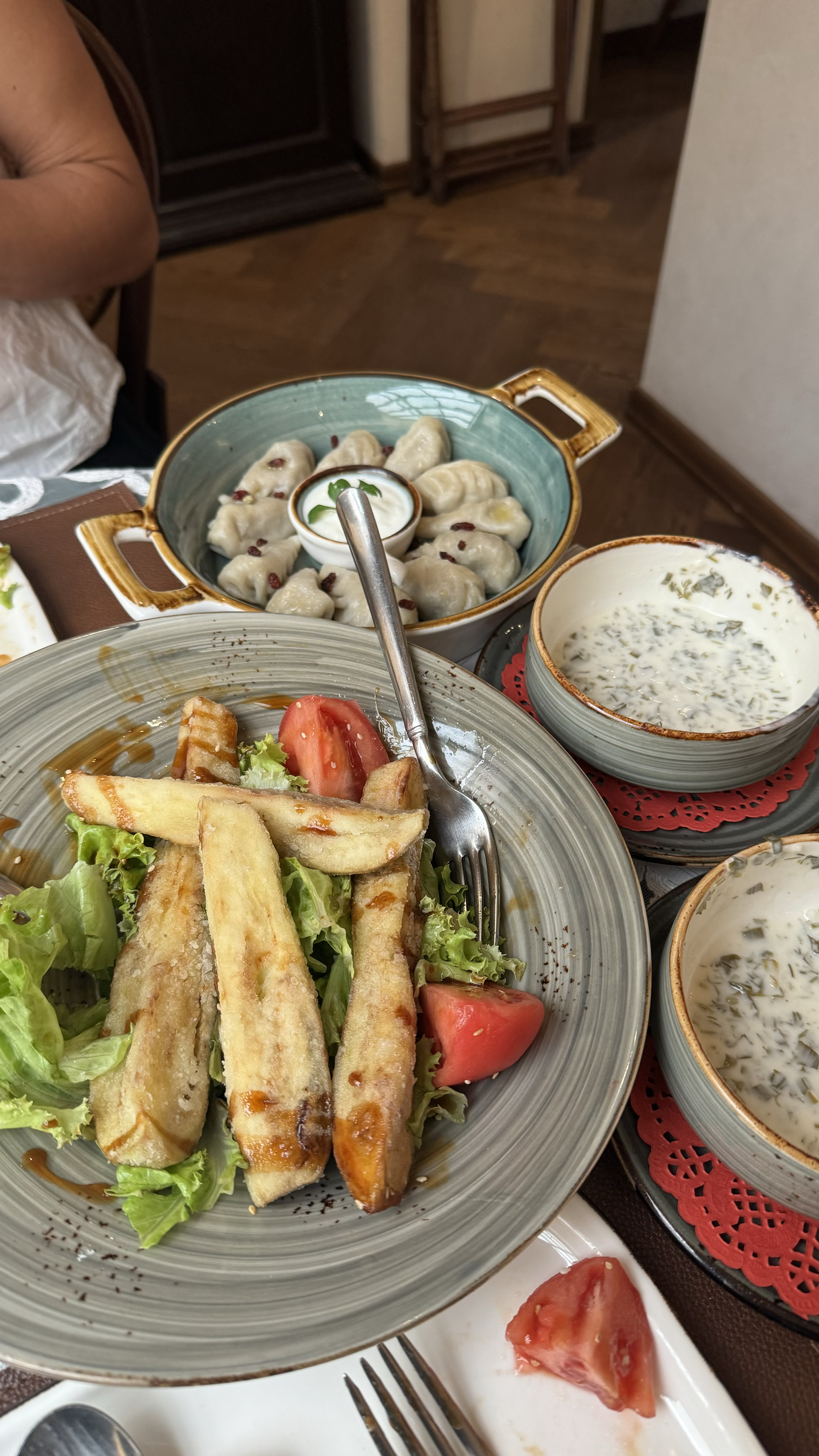 Lali Kitchen & Bar – fabulous, hip Georgian restaurant right by the Republic Square. Would highly recommend coming here for a dinner. We had Khinkali, a large twisted Georgian dumpling + Khachapuri, a traditional Georgian dish of cheese-filled bread, + Shkmeruli, a decadent chicken dish cooked in a garlic, sour cream sauce. YUM!