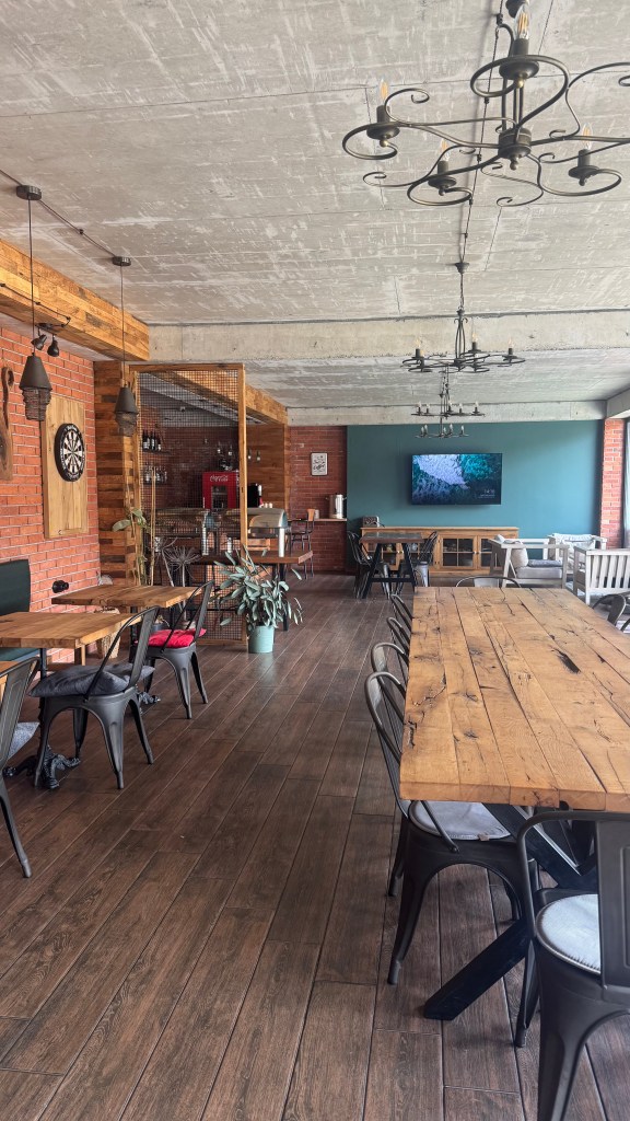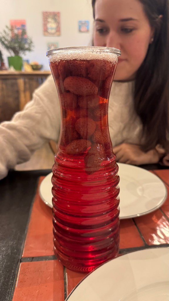 - Samani – This is a great dinner spot with all the classic delicious Georgian classics. I split a Adjarian khachapuri, khinkali and a Liter of Strawberry compote (local handmade fruit juice) with a Spanish couple I met on my bus ride from Armenia to Tbilisi, a few days prior. The restaurant had a nice vibe to it (whereas a lot of places in Stepantsminda were more basic in decor)